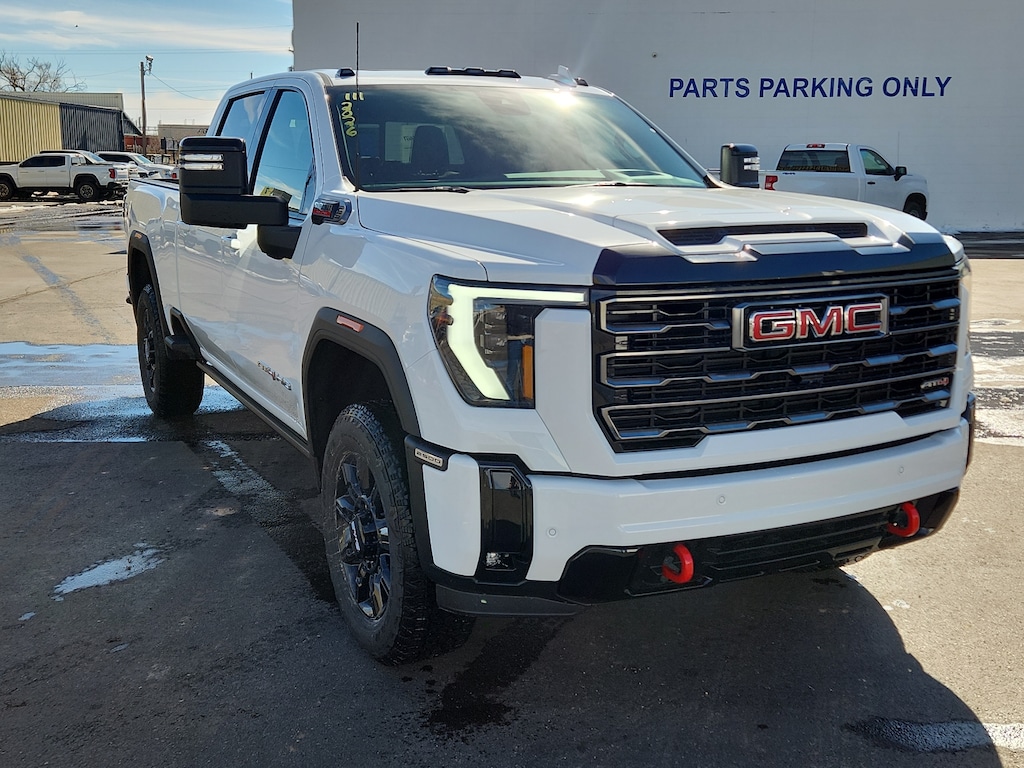 Summit White 2026 GMC Sierra 2500HD AT4 4WD 10-Speed Automatic Duramax 6.6L V8 Turbodiesel 10-Speed Automatic 4WD Jet Black With Kalahari Accents Leather.
